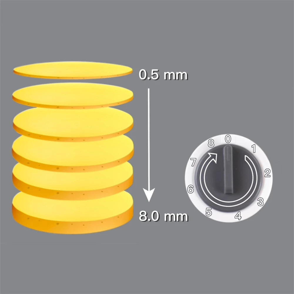 [Safer] The unique design prevents your hands from ever getting near the built-in blades, making this appliance the safest option for professional slicing.