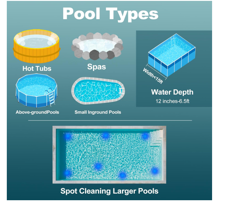 WIRELESS CHARGING FOR CONVENIENCE โ The built-in lithium-ion battery ensures long-lasting performance with wireless charging. This cordless design allows easy cleaning of small above-ground pools, in-ground pools, spas, and hot tubs.